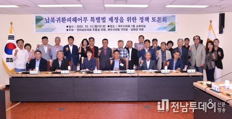 전남투데이 조평훈 기자 | 여수시의회는 지난 10월 13일, 구민호·김채경 여수시의원과 주종섭 전남도의원 공동 주최로 ‘납북귀환피해어부 특별법 제정을 위한 정책토론회’를 개최했다.