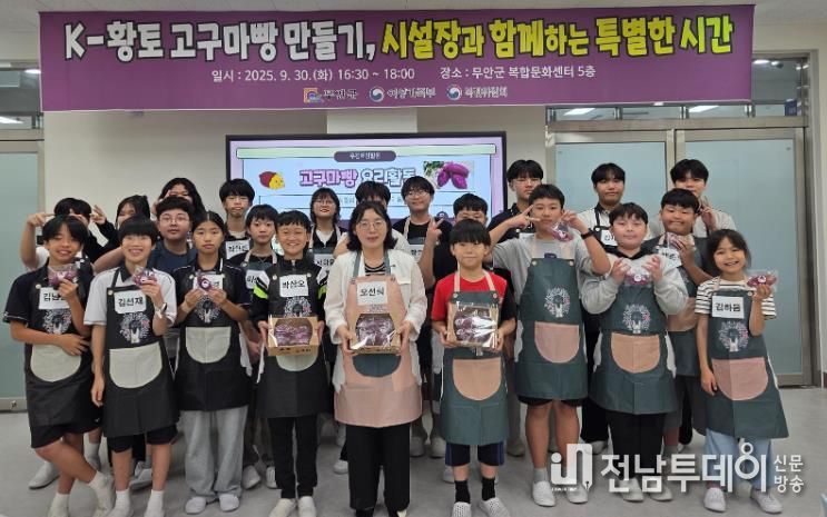 전남투데이 김길룡 기자 | 전남 무안군 청소년방과후아카데미는 지난 9월 30일 청소년 20여 명과 시설장이 함께하는‘K-황토고구마 빵 만들기’프로그램을 성황리에 진행했다.