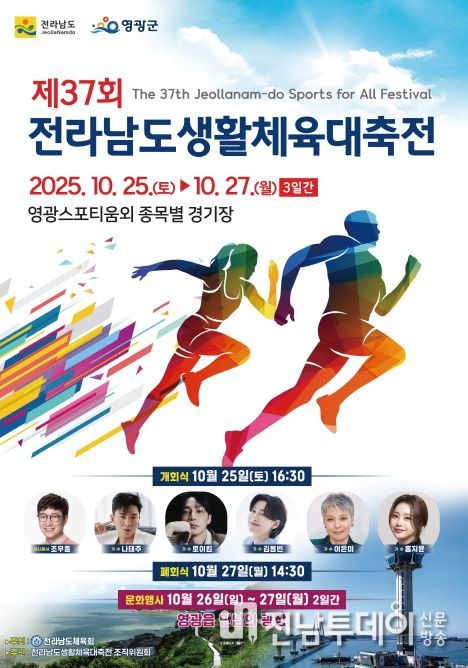 전남투데이 박세훈 기자 | 전라남도체육회가 주최하고 전라남도 생활체육대축전 조직위원회가 주관하는 제37회 전라남도생활체육대축전이 10월 25일 오후 4시 30분, 영광스포티움 종합운동장에서 성대하게 막을 올린다.