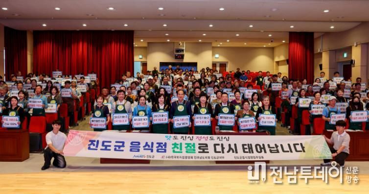 전남투데이 문경식 기자 | 진도군은 최근 일부 음식점의 불친절 사례가 유튜브 등에 게시되며 진도에 대한 관광객의 부정적인 여론이 확산함에 따라, 유사 사례의 재발을 방지하고 친절 문화의 정착을 위해 ‘음식점 친절 서비스교육 및 결의대회’를 개최했다.