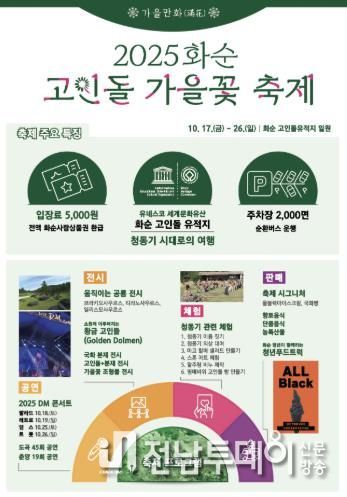 전남투데이 강영선 기자 | 화순군은 10월 17일부터 10월 26일까지 10일간 개최되는 ‘2025 화순 고인돌 가을꽃 축제’에서 통합문화이용권(문화누리카드)으로 결제가 가능한 임시 가맹점 46개소를 운영한다고 밝혔다.