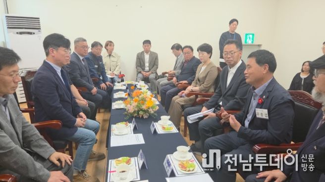 전남투데이 손영욱 기자 | 전라남도의회 주종섭 의원(더불어민주당, 여수6)은 19일 진도실내체육관에서 열린 ‘2025년 이주노동자 작업복·겨울옷 나눔 행사’ 현장에서 김영훈 고용노동부 장관을 직접 만나 여수국가산단 고용위기 해결을 위한 건의서를 전달했다.