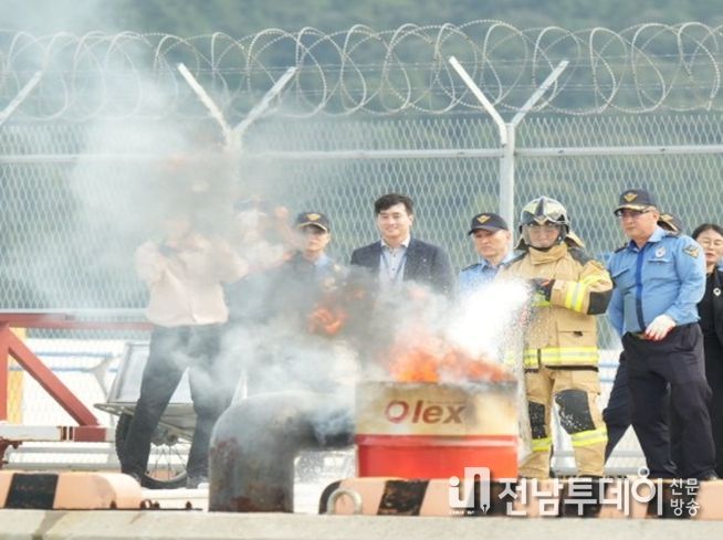 특히, FRP를 활용한 모의 화재 상황을 부여하고, 실제 해상 조건과 유사한 환경에서 ‘폼 소화장비’를 운용해 화재 진압 효과를 검증했다.