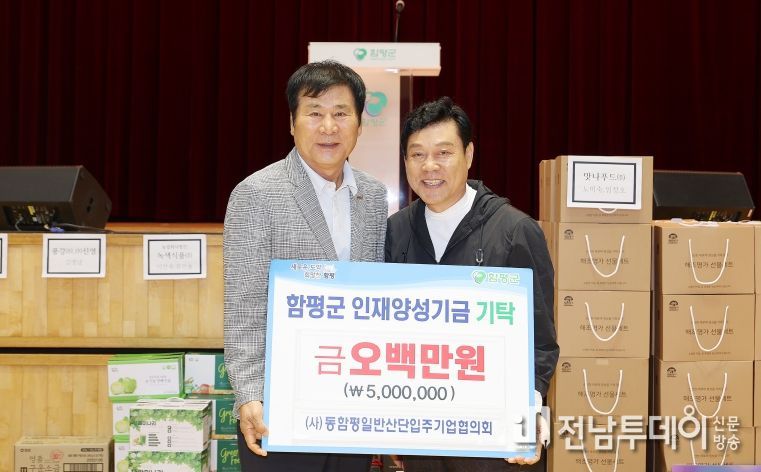 함평군은 20일 “(사)동함평일반산단입주기업협의회가 지난 18일 열린 ‘제2회 동함평산단의 날 가족 한마당 행사’에서 군 인재양성기금에 500만 원을 기탁했다”고 밝혔다.
