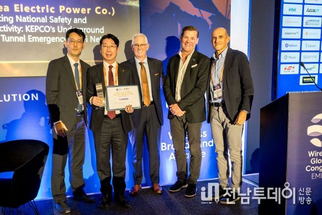 전남투데이 손영욱 기자 | 한국전력이 지난 10월15일 프랑스 파리에서 개최된 ‘2025 WBA Industry Awards’(인더스트리 어워드)에서 ‘전력구 특화 비상통신망 기술’의 공공 서비스 혁신성을 인정받아 ‘사회적 가치 창출부문 대상(Best Wi-Fi for Social Impact)’을 글로벌 유틸리티 최초로 수상했다.