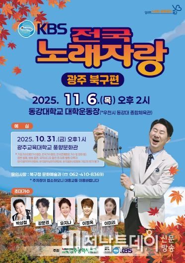 21일 북구에 따르면 오는 11월 6일 오후 2시부터 ‘KBS 전국노래자랑 광주 북구편’ 본선 녹화가 동강대학교 운동장에서 진행된다.