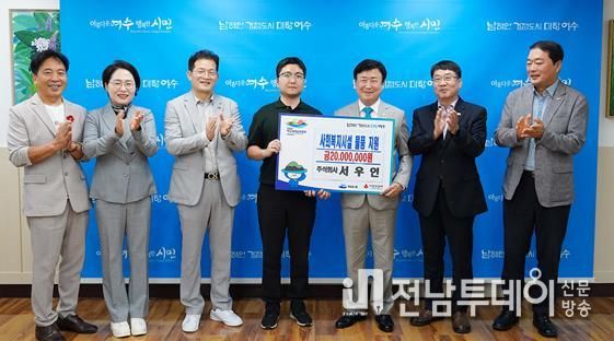 이날 후원증서 전달식은 여수시장실에서 열렸으며, 정기명 시장을 비롯해 장충환 ㈜서우인 대표, 박종철 ㈜한국이씨엔이크리너 대표, 민덕희 시의원 등이 참석해 따뜻한 나눔의 뜻을 함께했다.
