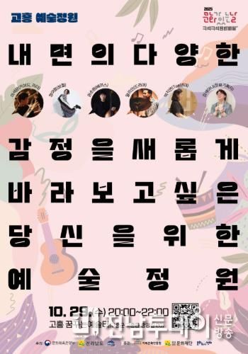전남투데이 조평훈 기자 | 고흥군과 고흥군 문화도시센터는 ‘10월 문화가 있는 날 구석구석 문화배달–고흥예술정원’ 프로그램을 오는 10월 29일 오후 8시, 고흥 꿈꾸는예술터에서 진행한다고 밝혔다.