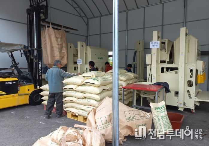 전남투데이 김완규 기자 | 해남군은 콩 수확시기 농가 일손을 덜어주기 위해 콩 선별 농가셀프 작업장을 운영해 농업인들의 큰 호응을 얻고 있다.