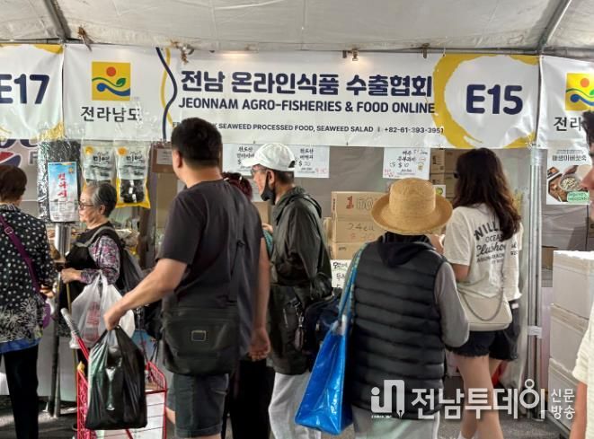 전남투데이 손영욱 기자 | 전라남도는 지난 19일까지 4일간 미국 LA 서울국제공원에서 열린 ‘제52회 LA한인축제’에 농수산식품 수출기업 20개 사와 함께 참가해 전남 우수 농수산식품을 소개하며 현지에서 큰 호응을 얻었다고 밝혔다.