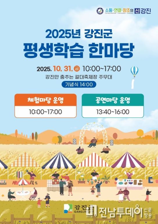 전남투데이 박동운 기자 | 강진군이 오는 31일 강진만 춤추는 갈대축제가 열리는 강진만 생태공원에서 2025 강진군 평생학습 한마당을 개최한다.