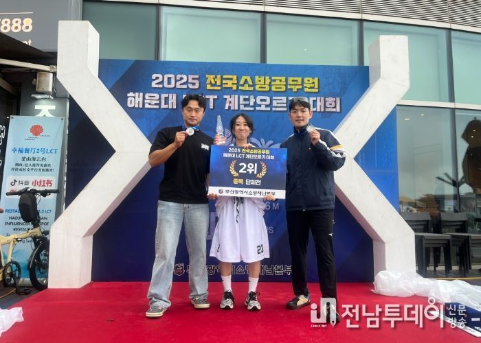 전남투데이 손영욱 기자 | 전남소방본부는 10월 24일 부산 해운대의 초고층 LCT 랜드마크동에서 열린 ‘2025년 소방공무원 해운대 LCT 계단오르기 대회’에 참가해 전남소방의 강철 같은 체력을 증명했다고 밝혔다.