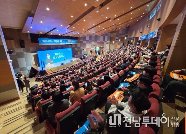 전남투데이 정홍균 기자 | 광주과학기술원(GIST) 오룡관이 시민들의 열기로 가득 찼다. 지난 1일, 광주시의회 더불어민주당 박수기 원내대표(광산 5)가 자신의 정치철학을 담은 저서 『연결의 정치』 출간을 기념해 북콘서트를 개최했다.