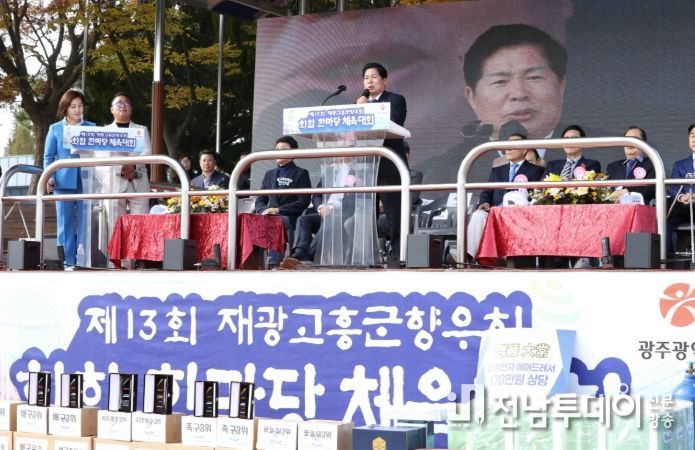 전남투데이 조평훈 기자 | 고흥군은 지난 2일 광주 첨단체육공원에서 열린 제13회 재광주고흥군향우회 화합 한마당 체육대회에서 전국적인 고향사랑기부제 홍보에 나섰다고 밝혔다.