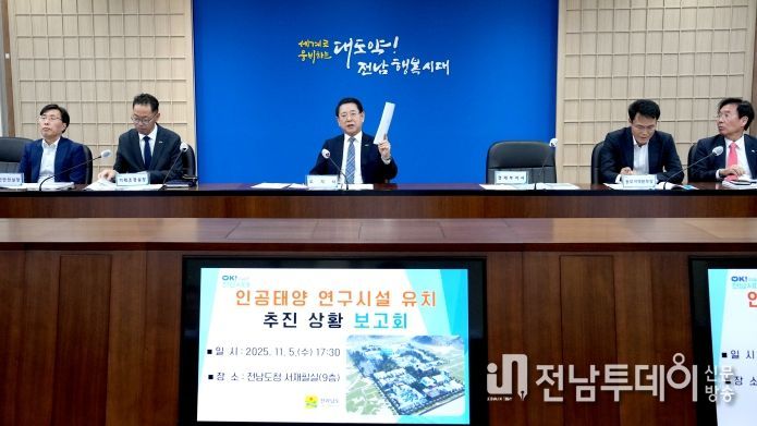 전남투데이 김용희 기자 | 전라남도는 5일 도청 서재필실에서 ‘인공태양 연구시설 유치 공모 추진상황 보고회’를 개최하고, 정부의 유치 공모에 대응하기 위한 전략과 추진상황을 점검했다.