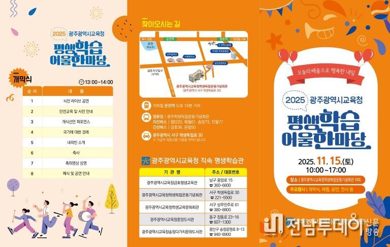 전남투데이 정홍균 기자 | 광주시교육청금호평생교육관은 오는 15일 광주시교육청학생독립운동기념회관 야외 일원에서 시민 등을 대상으로 ‘2025 광주광역시교육청 평생학습 어울 한마당’을 개최한다.