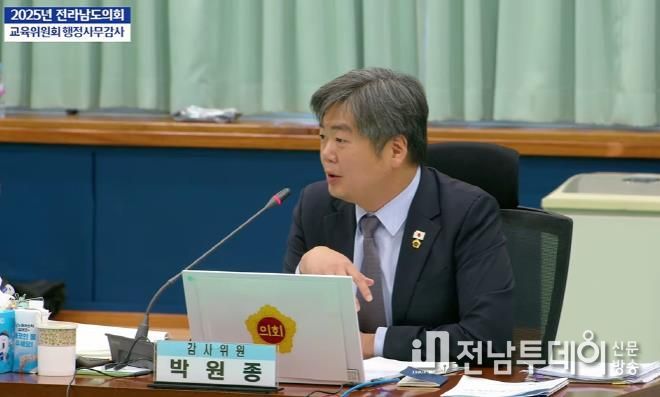 전남투데이 김용희 기자 | 전라남도의회 교육위원회 박원종 의원(더불어민주당·영광1)은 지난 11월 7일 열린 시·군 교육지원청 행정사무감사에서 교권보호위원회를 비롯한 각종 위원회 운영 실태를 지적하며, “교권 보호는 선택이 아니라 의무이며, 지원청이 무관심하면 교사를 지켜줄 아무런 장치도 없다”고 강하게 질타했다.