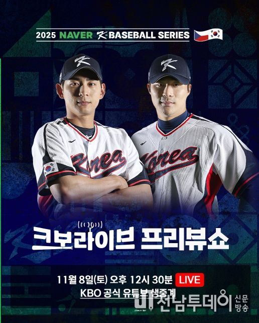 전남투데이 박세훈 기자 | KBO 공식 유튜브 라이브 방송인 ‘크보라이브’가 오는 11월 8일(토)과 9일(일) 양일간, 2025 NAVER K-BASEBALL SERIES 고척스카이돔 현장에서 특별 현장 프리뷰쇼로 생방송을 진행한다.