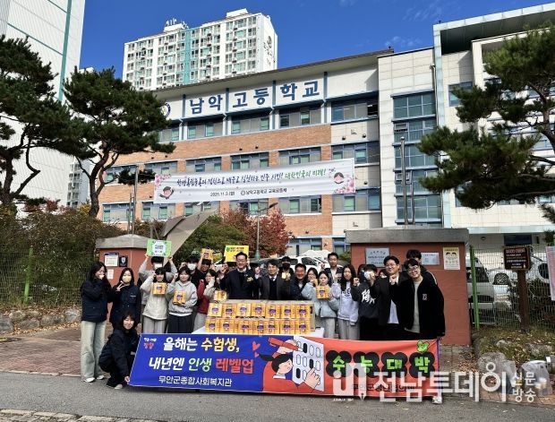 전남투데이 김길룡 기자 | 무안군종합사회복지관은 11일 남악고등학교에서, 2026년도 대학수학능력시험을 앞둔 수험생들을 격려하기 위한 ‘수능 응원 이벤트’활동을 펼쳤다.