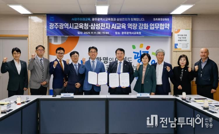 전남투데이 정홍균 기자 | 광주시교육청은 11일 본청 상황실에서 삼성전자와 함께 AI교육역량 강화를 위한 업무협약(MOU)을 체결했다.