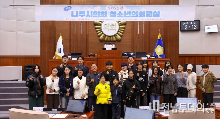 전남투데이 김윤걸 기자 | 나주시의회는 12일 나주시학교밖청소년지원센터 청소년들의 참여로 ‘2025년 제3회 나주시의회 청소년 의회교실’을 성황리에 마쳤다.