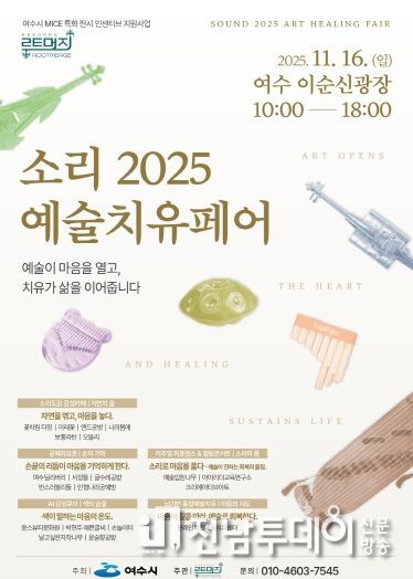 전남투데이 조평훈 기자 | 여수시는 오는 11월 16일 이순신광장에서 ‘소리 2025 예술치유페어’를 개최한다.