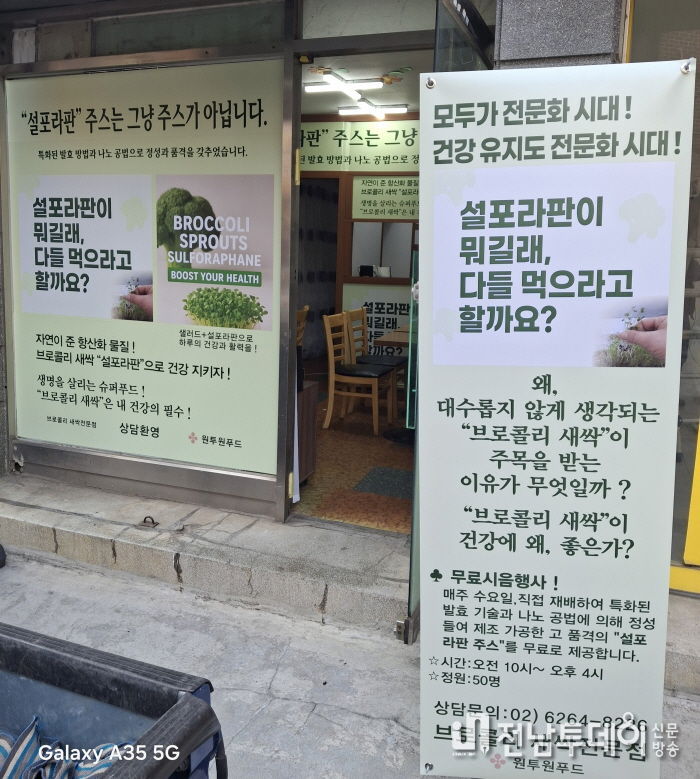 전남투데이 조은별 기자 | ”브로콜리 새싹 특수 재배와 홈 스마트 팜 신 농업“ 프로젝트를 진행하고 있는 원투원플랫폼과 원투원푸드에서는 지난 11월 10일 서울 금천구 독산동에 현대인들의 지역 주민들의 건강을 위한 ”브로콜리 새싹 전문점“이 개설했다.