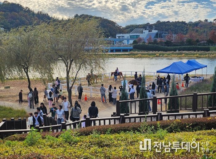 전남투데이 조평훈 기자 | 순천시는 한국마사회와 협업해 지난 11월 1일부터 3주간 매주 주말 순천만국가정원 내 스페이스 브릿지 하부 동천변에서 운영한 도심승마체험이 시민과 관광객 3천여 명이 참여한 가운데 성황리에 마무리됐다고 밝혔다.