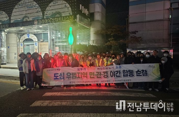이번 합동순찰에는 순천시청, 순천경찰서, 여성친화시민참여단, 여성자율 방범대 등 총 41명이 참여했으며 상가 밀집지역, 어두운 골목길 등 지역 내 범죄 취약구역을 집중적으로 점검하고 범죄예방 캠페인도 함께 진행했다.
