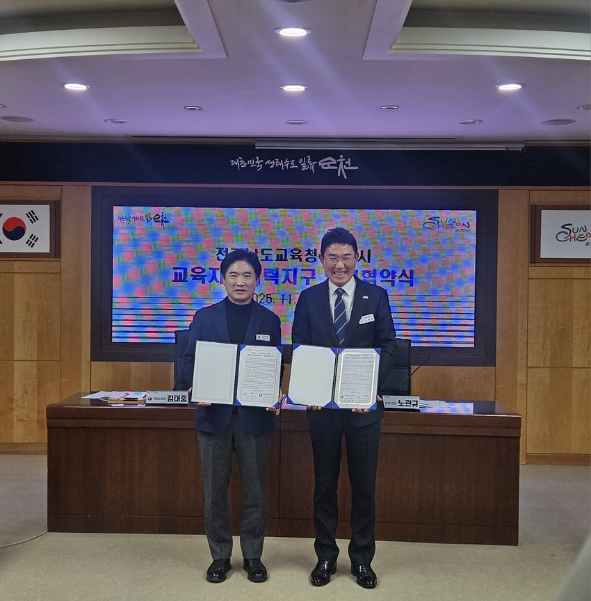 전남투데이 조평훈 기자 | 전라남도교육청, 순천시, 순천교육지원청은 11월 19일 오후 5시 순천시청 소회의실에서 ‘순천지구 교육자치협력지구 업무협약식(MOU)’을 열고 지역 교육생태계 조성과 교육자치 기반 구축을 위한 본격적인 협력 체계를 선언했다.