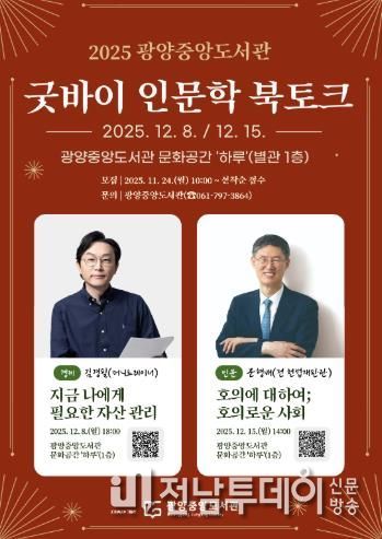 전남투데이 조평훈 기자 | 광양중앙도서관은 연말을 맞아 시민들의 자기성찰과 삶의 재정비를 돕기 위한 '굿바이 인문학 북토크'를 운영한다고 밝혔다.