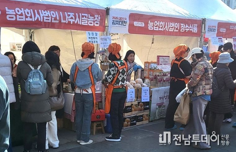 전남투데이 김윤걸 기자 | 전라남도 나주시는 ‘김치의 날’인 지난 22일 광주 5․18 민주 광장에서 개최된 ‘2025 대한민국 김치대전’에 참가해 나주시 인기 농특산물 홍보 및 판촉 행사를 가졌다고 밝혔다.