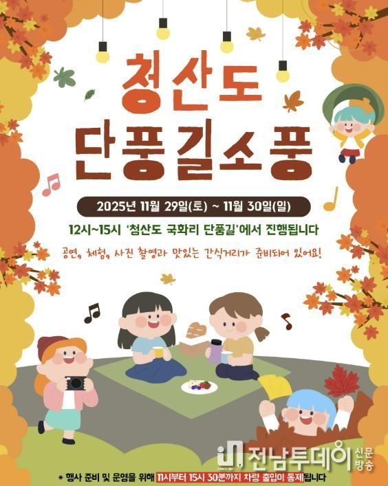 한편 ‘청산도 단풍길 소풍’은 지역관광추진조직(DMO) 육성 지원 사업의 일환으로 청산농협 DMO가 주최하고, 한국관광공사와 완도군이 후원하며, 주민 주도의 관광 역량 강화와 섬 관광 프로그램 활성화를 위해 마련된 행사이다.