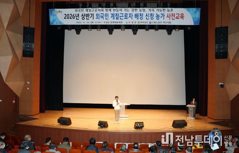 전남투데이 조평훈 기자 | 보성군은 지난 24일 보성군 문화예술회관에서 ‘2026년 외국인 계절근로자 제도’에 대해 상반기 배정 신청 농가를 대상으로 사전 교육을 실시했다고 밝혔다.