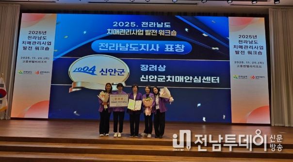 전남투데이 김길룡 기자 | 신안군 치매안심센터가 25일 고흥군에서 열린 ‘2025년 전라남도 치매관리사업 발전대회’에서 도내 22개 시·군 보건소 중 우수기관으로 선정돼 전라남도지사 기관표창을 수상했다.