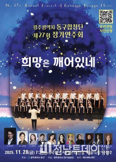 전남투데이 김경민 기자 | 광주 동구는 동구합창단이 오는 28일 오후 7시 30분 국립아시아문화전당 예술극장 극장2에서 ‘제27회 정기연주회 희망은 깨어있네(Hope is Awake)’를 개최한다고 밝혔다.