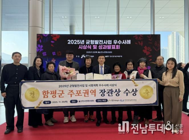 전남투데이 김길룡 기자 | 전남 함평군이 2025년 균형발전사업 우수사례 시상식’에서 3년 연속 우수사례 주민주도형 지역 발전 역량을 전국에 알렸다.