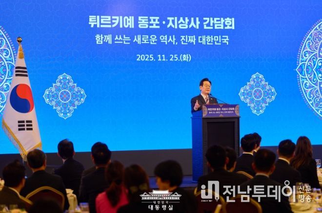 전남투데이 정홍균 기자 | 이재명 대통령은 순방 일정을 마치고 귀국하기에 앞서 25일(현지시간) 튀르키예 앙카라에서 동포·지상사 간담회를 개최했다.