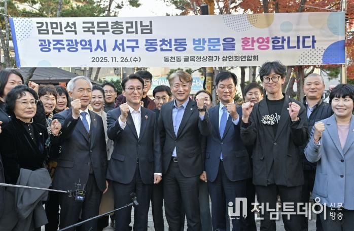 전남투데이 김경민 기자 | 광주광역시 서구가 추진한 골목경제 혁신정책이 또 한 번 중앙정부의 주목을 받았다. 서구는 26일 김민석 국무총리가 동천동 골목형상점가를 방문해 ‘골목경제119 프로젝트’ 추진 현황을 직접 점검하고 상인‧주민들과 소통하는 자리를 가졌다고 밝혔다.