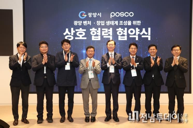 이날 광양시와 포스코홀딩스는 지속 가능한 창업생태계 조성과 지역 혁신 기반 확충을 위해 ‘벤처·창업 생태계 조성을 위한 상호협력 협약’을 체결했다.