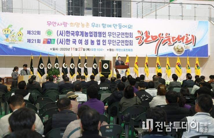 김산 군수는 축사를 통해 “한농연과 한여농이 중심이 되어 농업인의 화합을 도모하고 사기를 높이는 자리를 마련해 주신 데 감사드린다”며, “앞으로도 농업인이 존중받고 농촌에 활력이 넘치는 무안을 만들기 위해 최선을 다하겠다”고 말했다.