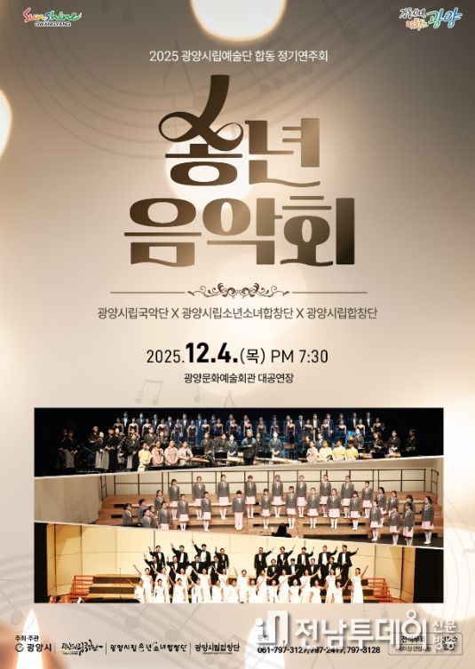 전남투데이 조평훈 기자 | 광양시는 연말을 맞아 오는 12월 4일 오후 7시 30분 광양문화예술회관 대공연장에서 2025년 광양시립예술단 합동 정기연주회 ‘송년음악회’를 개최한다고 밝혔다.