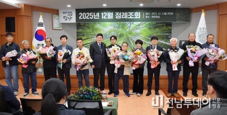 전남투데이 김길룡 기자 | 담양군이 1일 군청 면앙정실에서 공직자 160여 명이 참석한 가운데 12월 정례조회를 열고 연말 군정 점검과 내년도 군정 운영 방향을 공유했다.