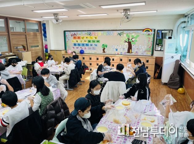 전남투데이 김경민 기자 | 광주매곡초등학교(교장 우재숙) 6학년 학생들이 11월 25일, 27일, 28일에 걸쳐 케이크 만들기 체험을 통해 파티셰 직업을 직접 경험하는 진로 교육 프로그램에 참여했다.