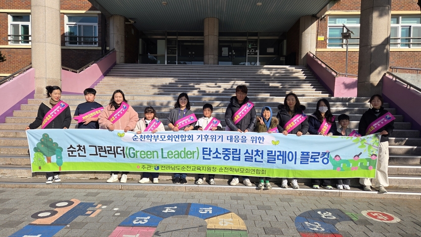 전남투데이 조평훈 기자 | 순천교육지원청(교육장 허동균)은 11월 29일 순천학부모회연합회가 주관하는 ‘기후위기 대응 탄소중립 실천 릴레이 플로깅’을 순천연향초에서 운영했다. 이번 사업은 학생·학부모·교직원이 함께 참여하여 환경 실천 문화를 확산시키고 지역 생태 환경 보존에 대한 실천 의지를 높이기 위해 마련됐다.