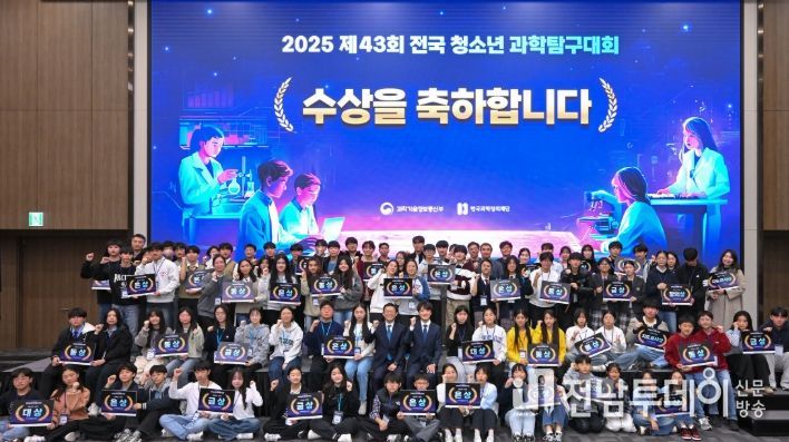 전남투데이 김경민 기자 | 광주광역시교육청창의융합교육원은 지난 11월 22~23일 청주 오스코(oSco)에서 열린 ‘2025 제43회 전국청소년과학탐구대회’에서 광주 대표로 참가한 학생들이 금상 2개, 은상 1개를 수상했다고 밝혔다.