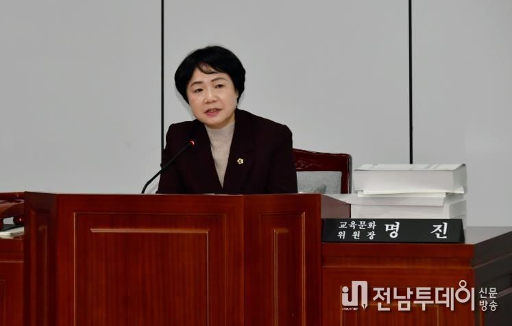2일 광주광역시의회 교육문화위원회 명진 위원장(더불어민주당, 서구2)은 제338회 광주광역시의회 제2차 정례회 교육문화위원회 소관 교육청 본예산 심사에서 기념식 관련 예산 확보 등을 제안했다.