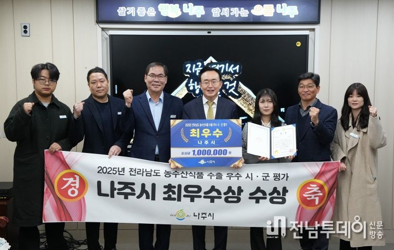 전남투데이 김윤걸 기자 | 전라남도 나주시는 민선 8기 출범 후 공격적인 해외시장 개척과 현지 판촉 전략을 바탕으로 전라남도 농수산식품 수출 우수 시군 평가에서 ‘최우수상’을 수상하며 3년 연속 수출 도시 위상을 굳혔다고 2일 밝혔다.