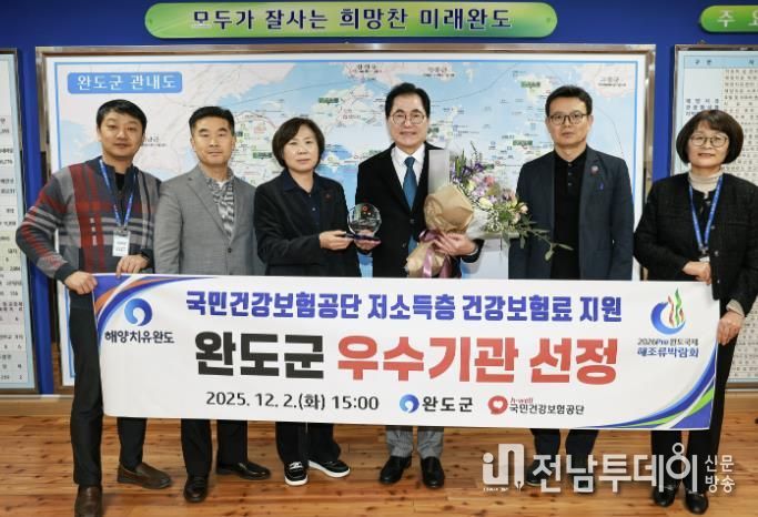 전남투데이 김용희 기자 | 완도군이 국민건강보험공단으로부터 ‘2025년 저소득층 보험료 지원’ 우수 기관으로 선정돼 감사패를 받았다.