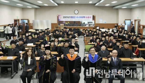 전남투데이 박상훈 기자 | 영암군이 1일 종합사회복지관에서 수료생 등 110여 명이 참석한 가운데 ‘2025년 영암군 시니어대학 수료식’을 개최했다.